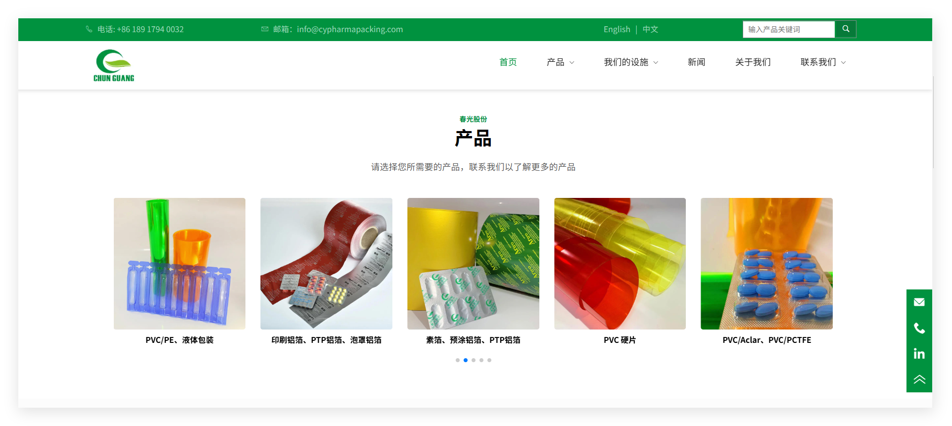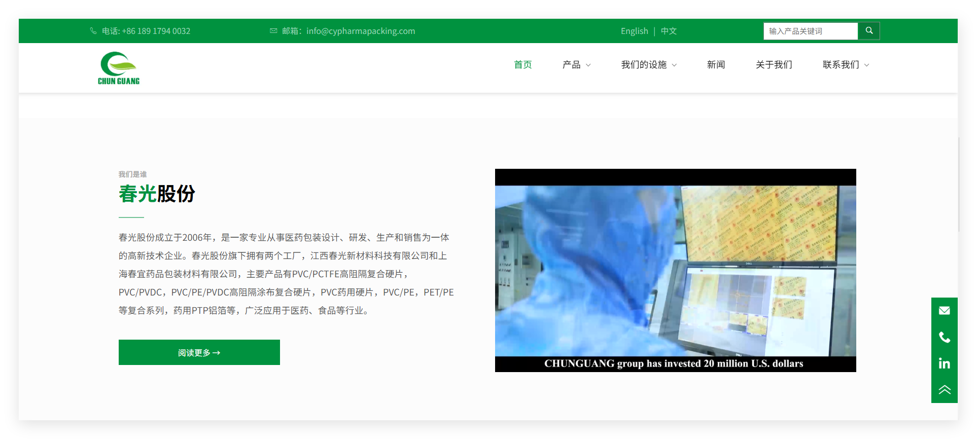 春光股份成立于2006年,是一家专业从事医药包装设计、研发、生产和销售为一体的高新技术企业。春光股份旗下拥有两个工厂,江西春光新材料科技股份有限公司和上海春宜药品包装材料有限公司,主要产品有PVC/PCTFE高阻隔复合硬片,PVC/PVDC,PVC/PE/PVDC高阻湿、阻氧涂布复合硬片,PVC药用硬片,PVC/PE,PET/PE等复合系列,药用PTP铝箔等,广泛应用于医药、食品等行业。